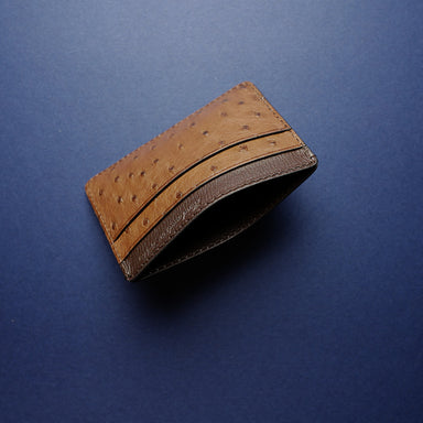 The item The brand Details This slim and practical card wallet is made from a beautiful brown ostrich leather with exquisite hand finishing and...