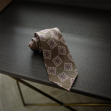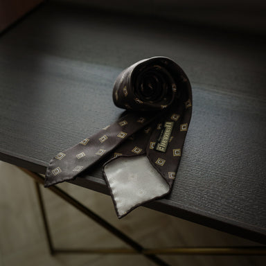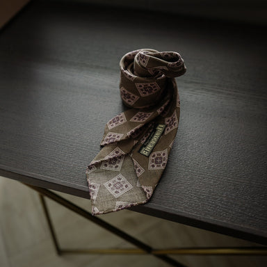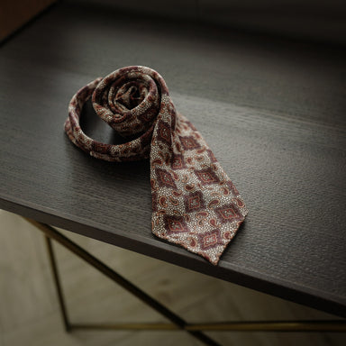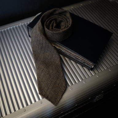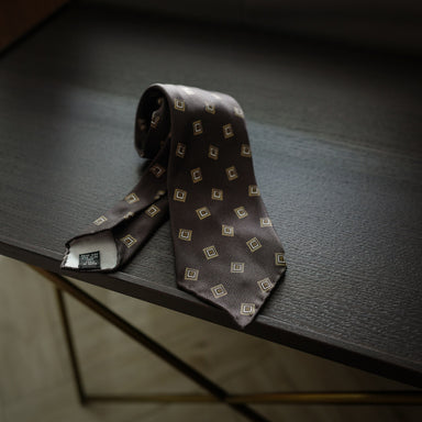 The item The brand Details This tie is handmade in the traditional seven-fold construction with brown silk fabric. The diamond print adds a subt...