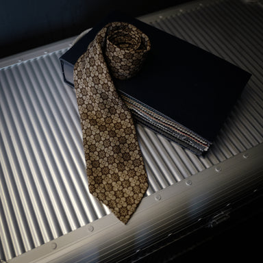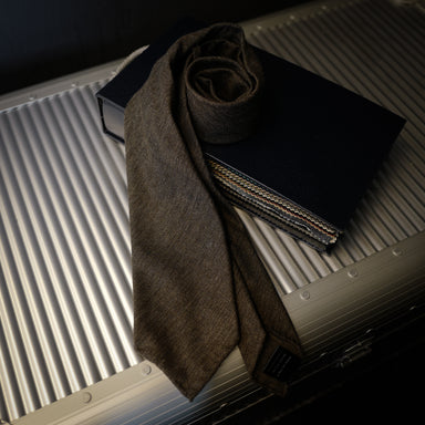 The item The brand Details This tie is handmade in the traditional seven-fold construction with brown jacquard fabric. The jacquard fabric is wo...