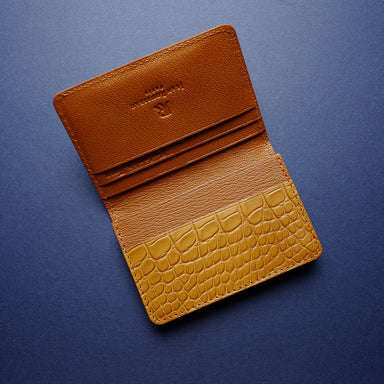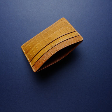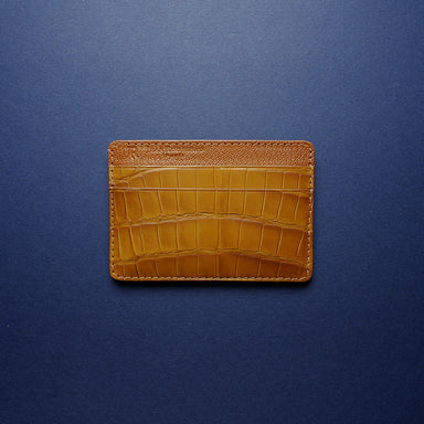 The item The brand Details This slim and practical card wallet is made from a beautiful honey brown alligator leather with exquisite hand finis...
