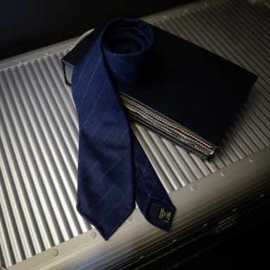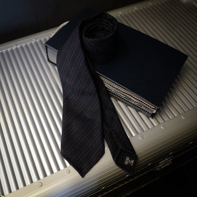 Navy Wool Tie with Blue Pin Stripes