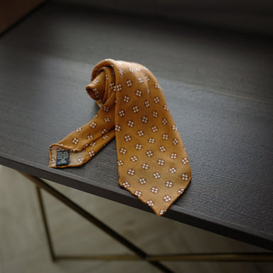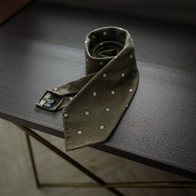 The item The brand Details This tie is handmade in the traditional seven-fold construction with wool and silk blend fabric. The diamond print cr...